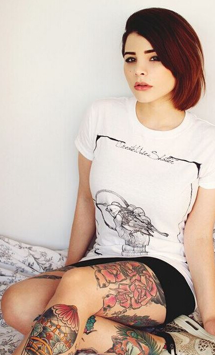 清纯漂亮欧美美女时尚个性腿部纹身图