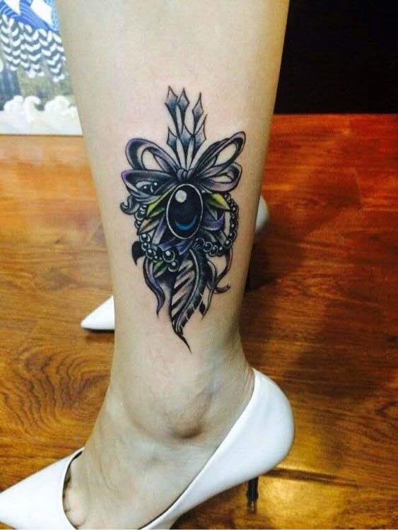 女性脚踝漂亮的宝石蝴蝶结纹身