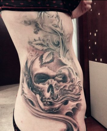侧腰超酷的黑白骷髅纹身图案