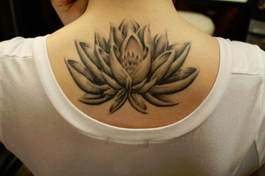 后背莲花纹身 女生手