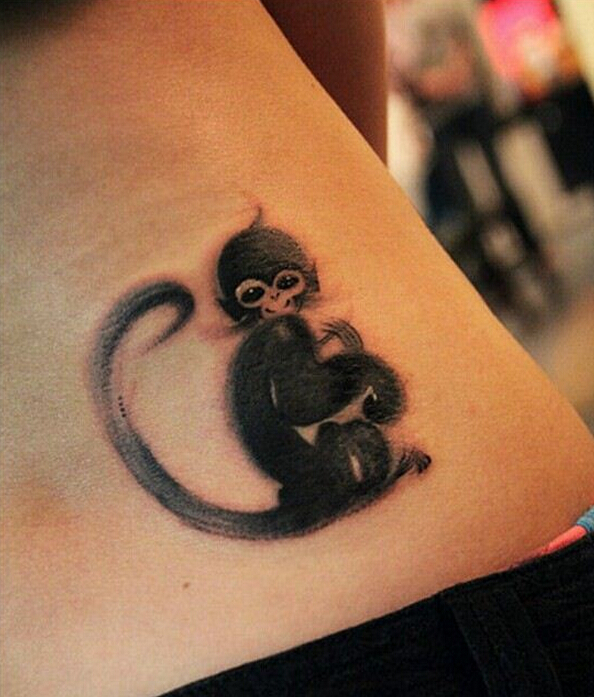 腰部水墨猴子纹身图