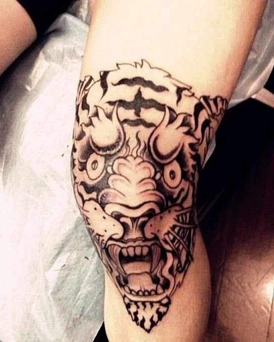 膝盖上老虎头纹身图案