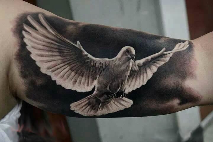 • 写实大臂鸽子纹身图案