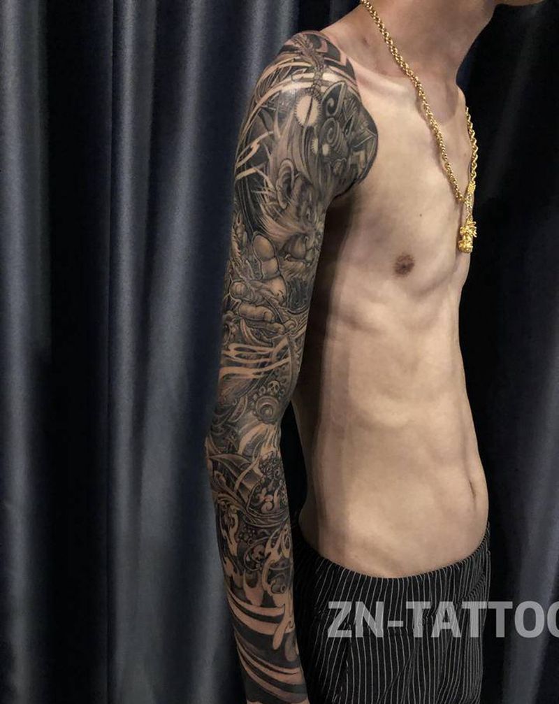 不动明王恢复后纹身图片_肩部胸部新传统纹身图案