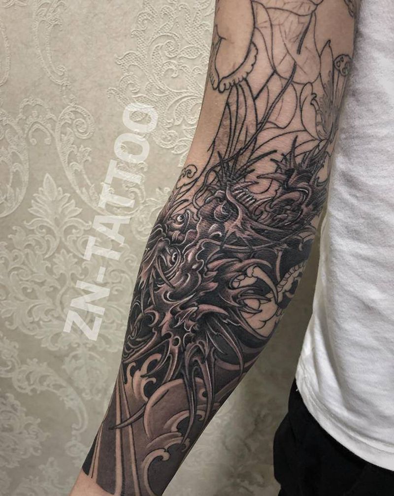 新传统观音未完纹身图片_手臂新传统纹身图案