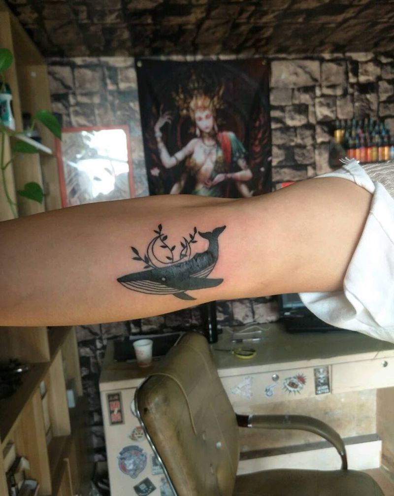 鲸鱼尾遮盖纹身图片_手臂纹身图案
