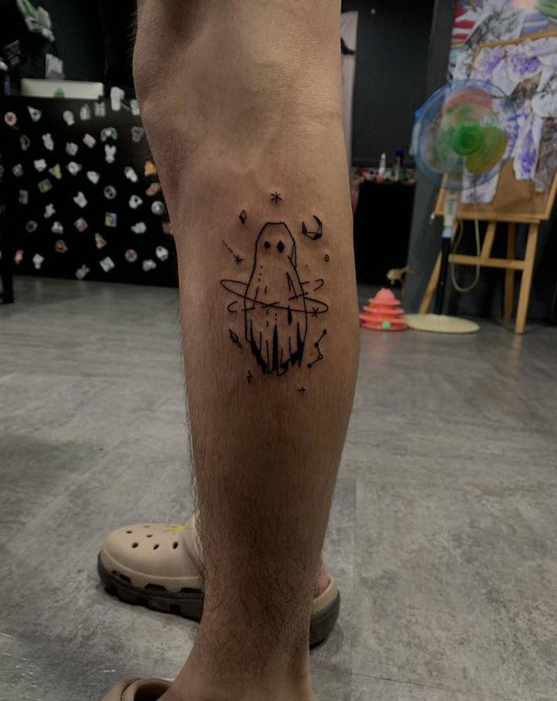 捕梦网纹身图片_腿部水墨水彩纹身图案