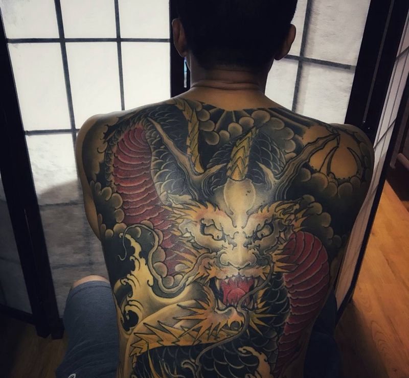 龙纹身图片_背部老传统新传统纹身图案
