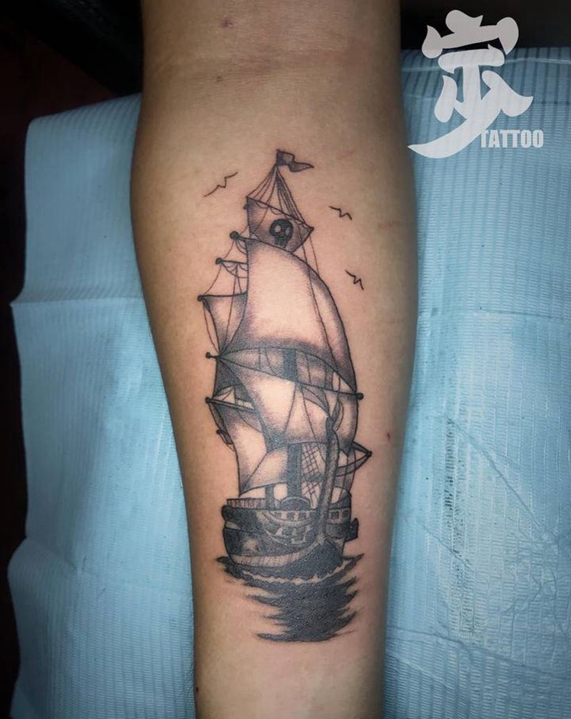 吉普赛女郎+骷颅纹身图片_手臂Old School图腾纹身图案