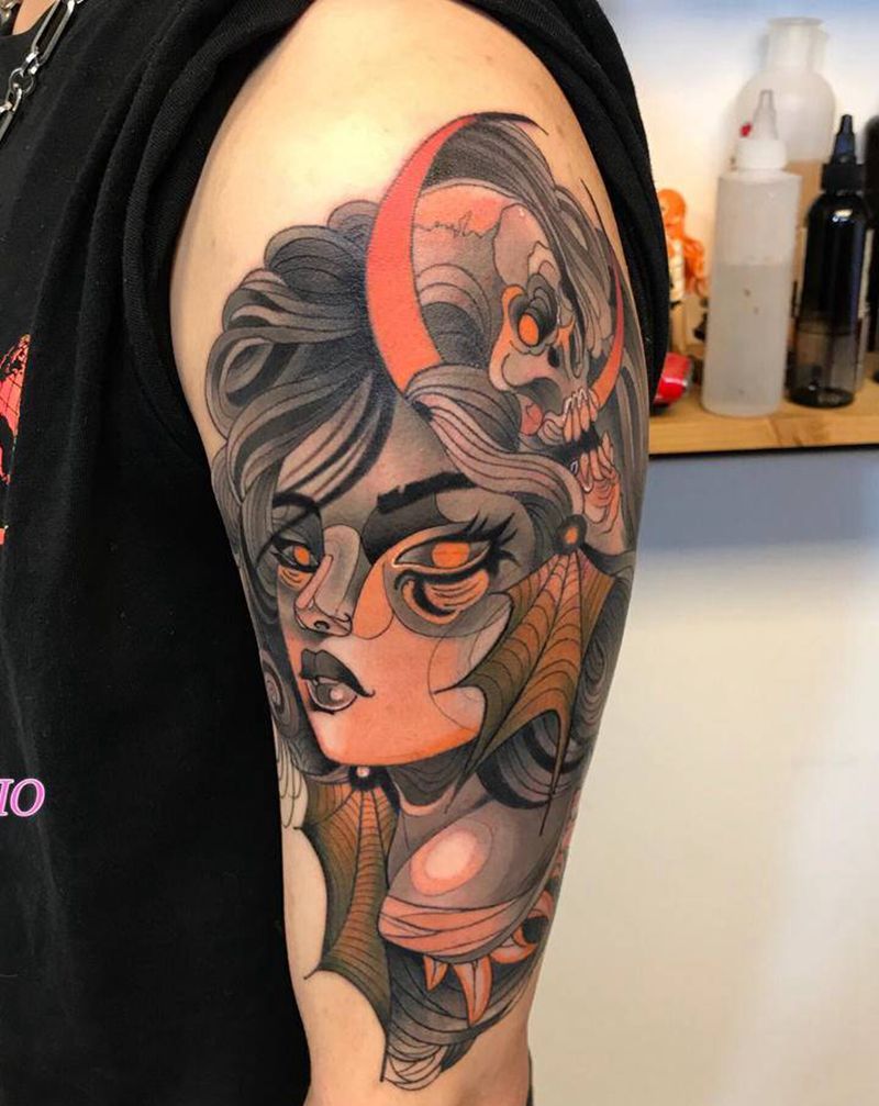 目前进度70%耗时75h纹身图片_New School纹身图案