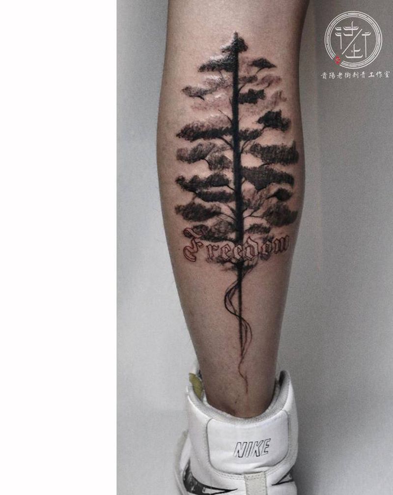 旧纹身纹身图片_腿部水墨遮盖纹身图案