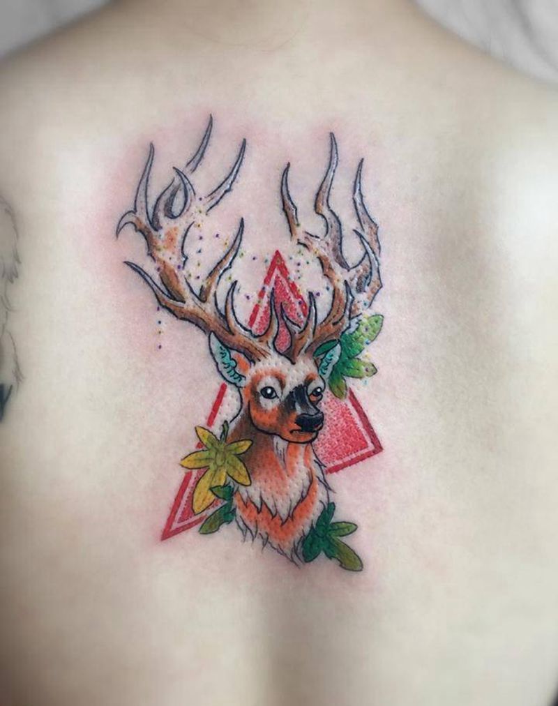 鹿头纹身图片_成品胸部清新动物静物原创纹身图案