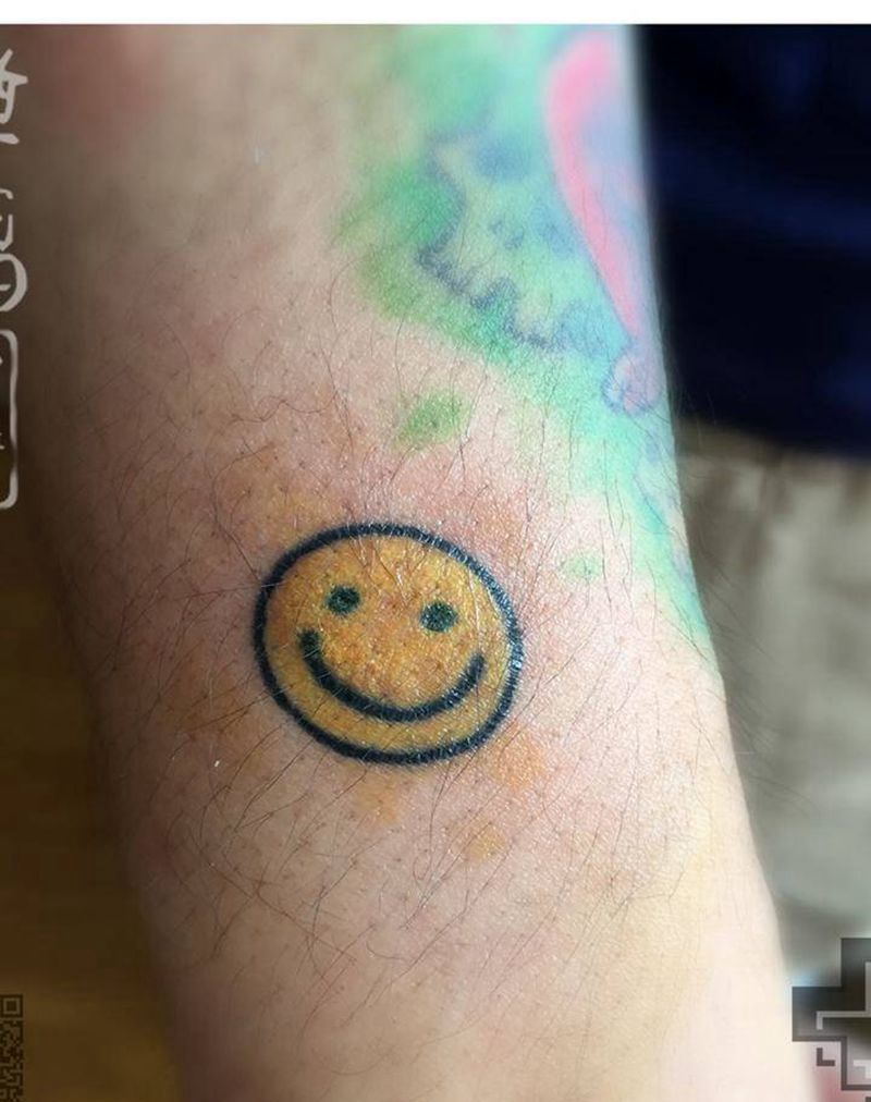 小笑脸纹身图片_成品手臂清新图腾纹身图案