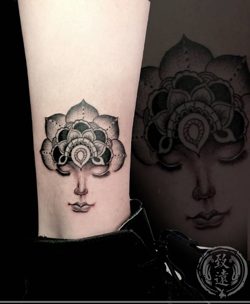 大庆致远刺青作品纹身图片_成品臀部背部肩部传统写实动物鬼神原创宗教纹身图案