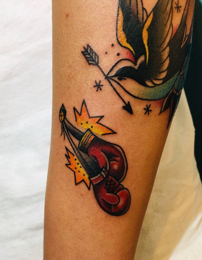 school燕子纹身图片_手臂Old School燕子鸟翅膀纹身图案
