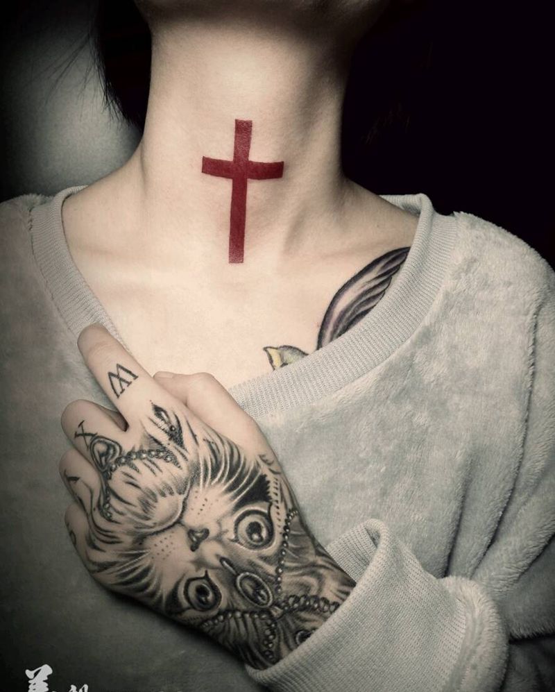 小情侣❤纹身图片_颈部清新几何成品纹身图案