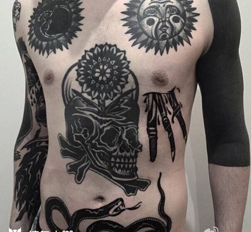 一点点扎满纹身图片_胸部腹部欧美写实纹身图案