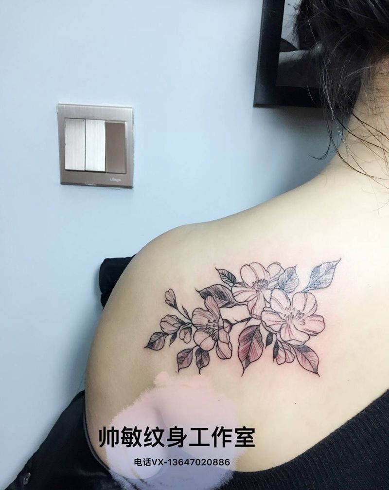 花纹身图片_帅敏TATTOO静物清新背部手稿纹身图案