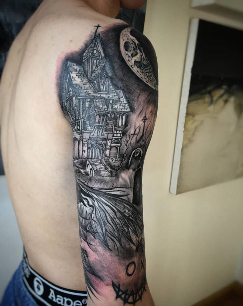 暗黑系纹身图片_背部点刺图腾暗黑系纹身图案