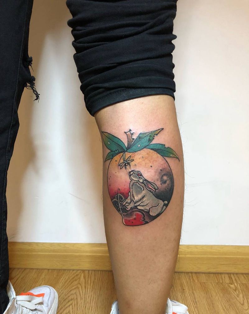 达摩蛋纹身图片_腿部新传统New School彩色纹身图案