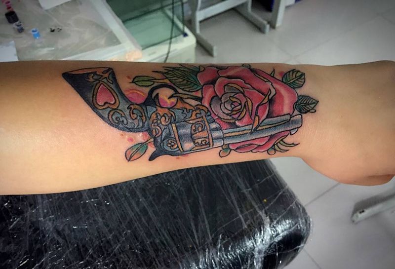 烛灯纹身图片_成品手臂欧美静物纹身图案