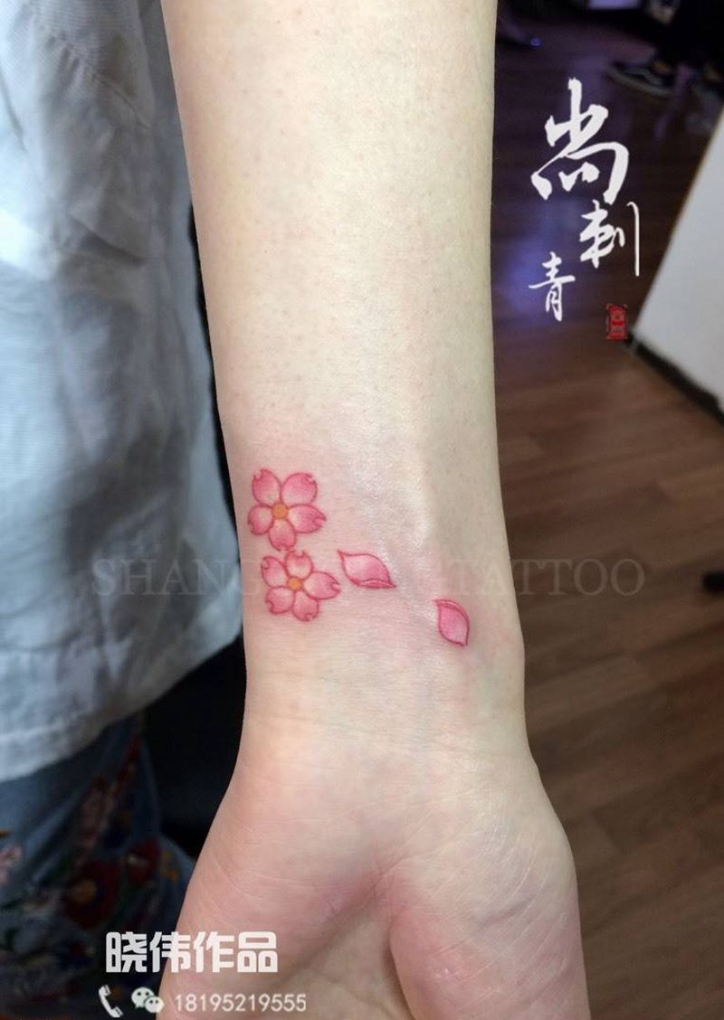 小花纹身图片_成品腿部清新植物图腾纹身图案