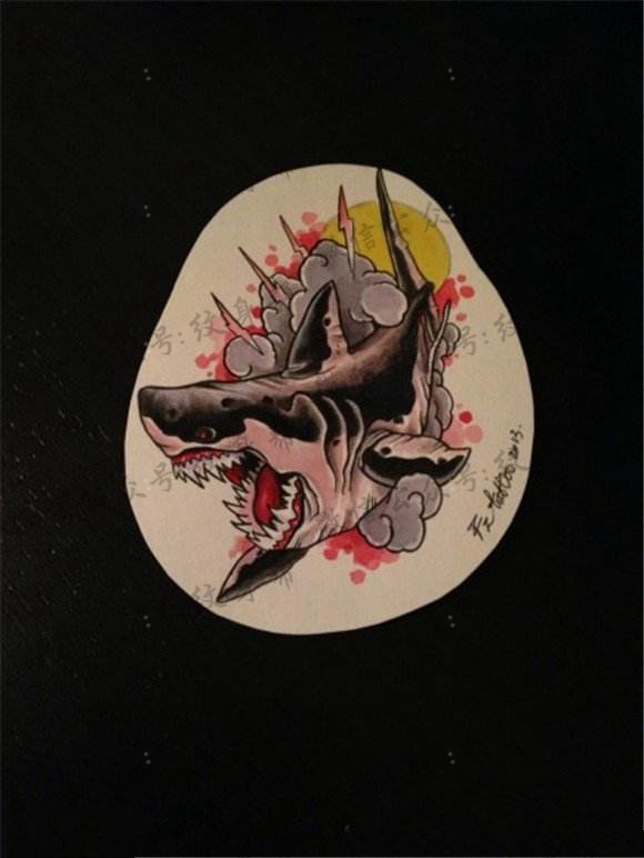 鲨鱼纹身手稿_33张海底动物纹身鲨鱼手稿图案图片