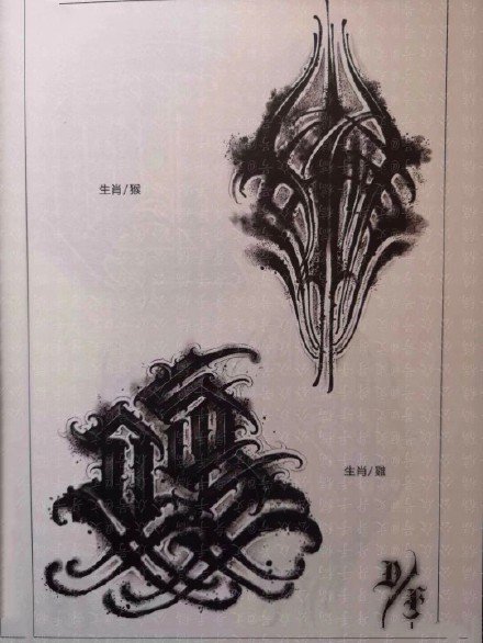 当前位置: 首页 >花体字手稿纹身图案>生肖和六字真言的一组花体字创意纹身设计素材赏析