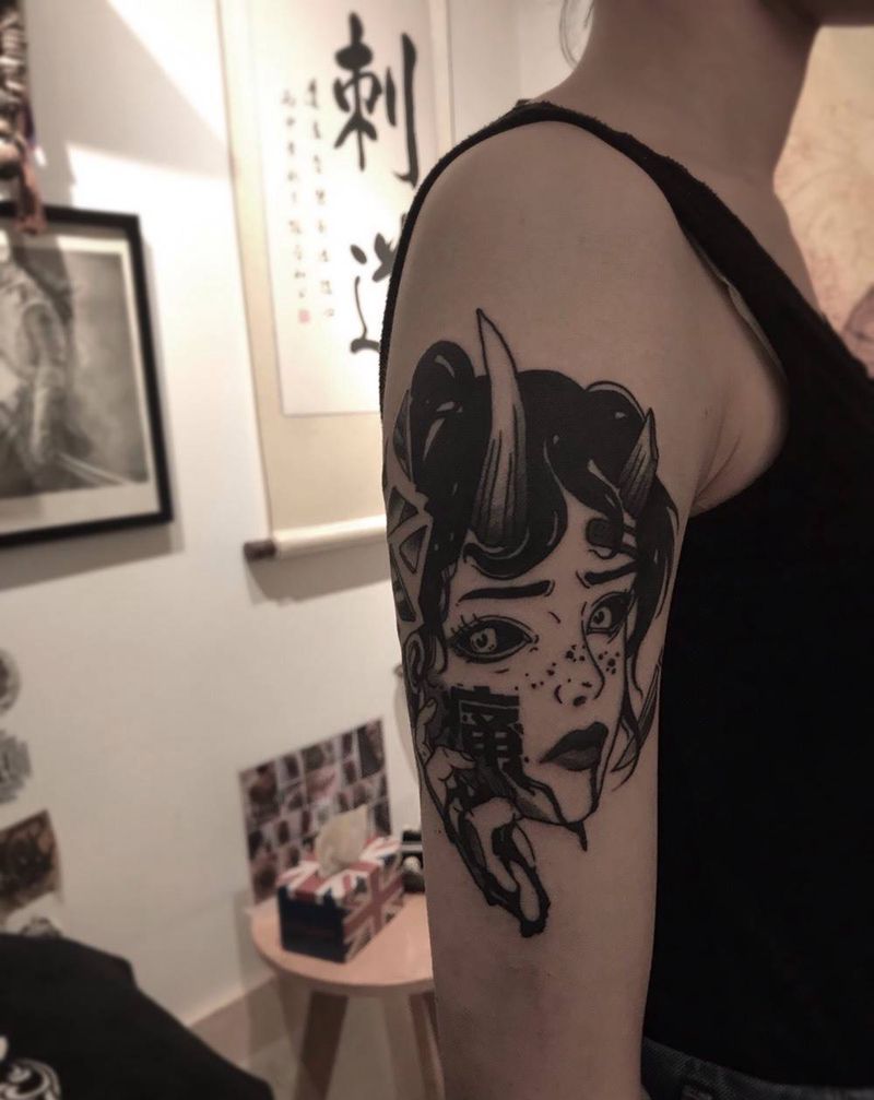 恢复1年后纹身图片_胸部手臂老传统纹身图案