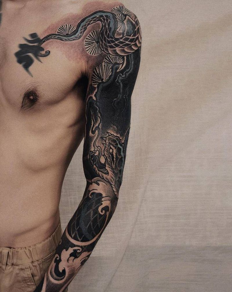 抓拍巨帅花臂,还有小惊喜哈哈哈纹身图片_手臂新传统纹身图案