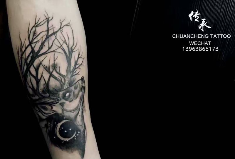 天权纹身图片_背部水墨纹身图案