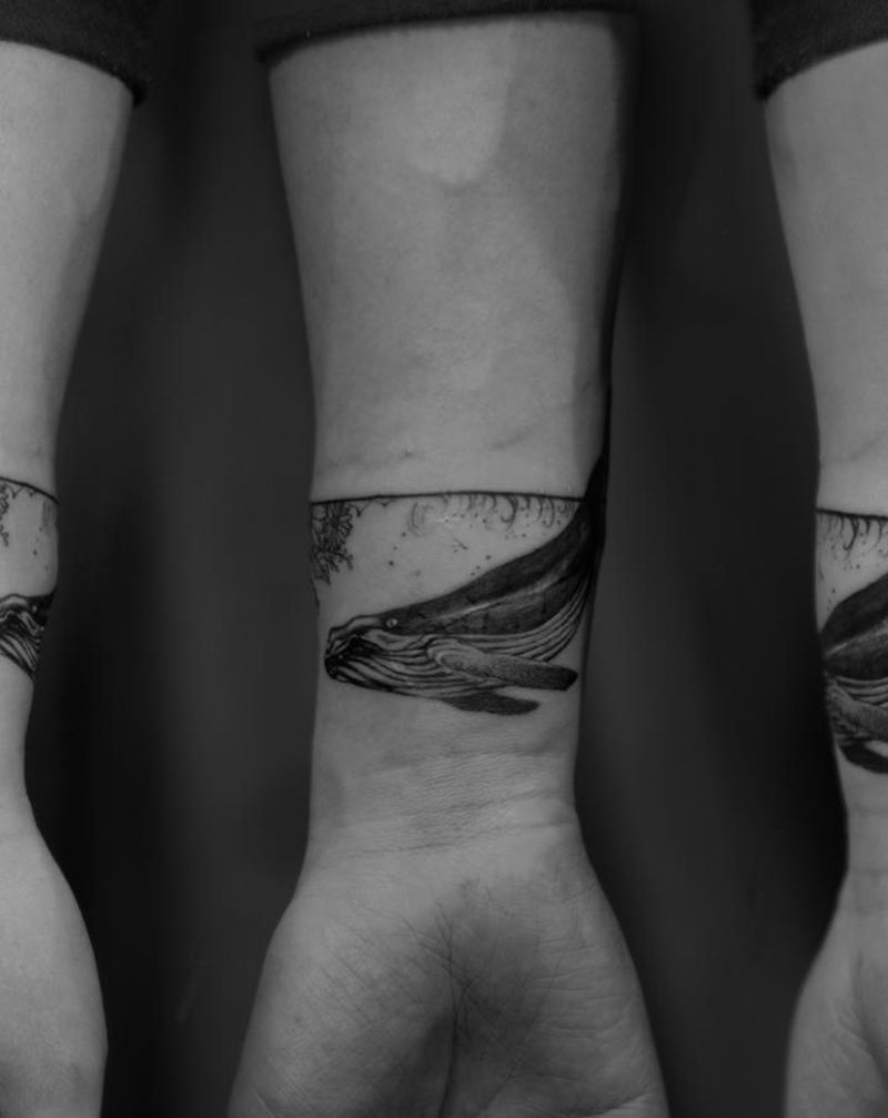 小清新鲸鱼纹身图片_背部图腾几何纹身图案