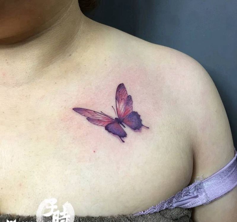 蝴蝶纹身图片_胸部欧美动物原创成品纹身图案