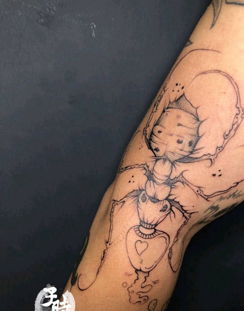 当前位置: 首页 >北京市纹身店-北京子时纹艺刺青工作室纹身图案>蚂蚁纹身图片_手臂欧美动物原创成品纹身图案