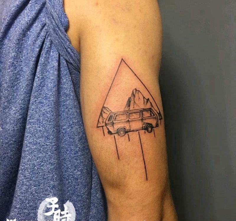 旅行大巴纹身图片_手臂欧美原创成品纹身图案
