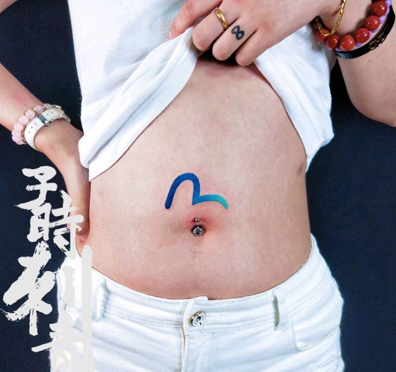 • T关于私处得爱!纹身图片_成品腹部清新字符图腾纹身图案