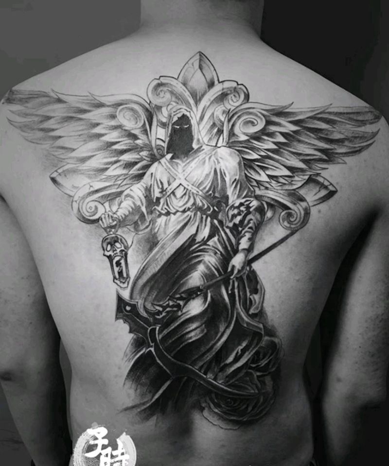 死神纹身图片_背部欧美写实原创成品纹身图案