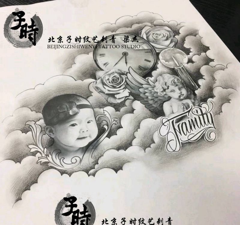 • T家庭图,一家四口生日纪念!纹身图片_手臂纹身图案