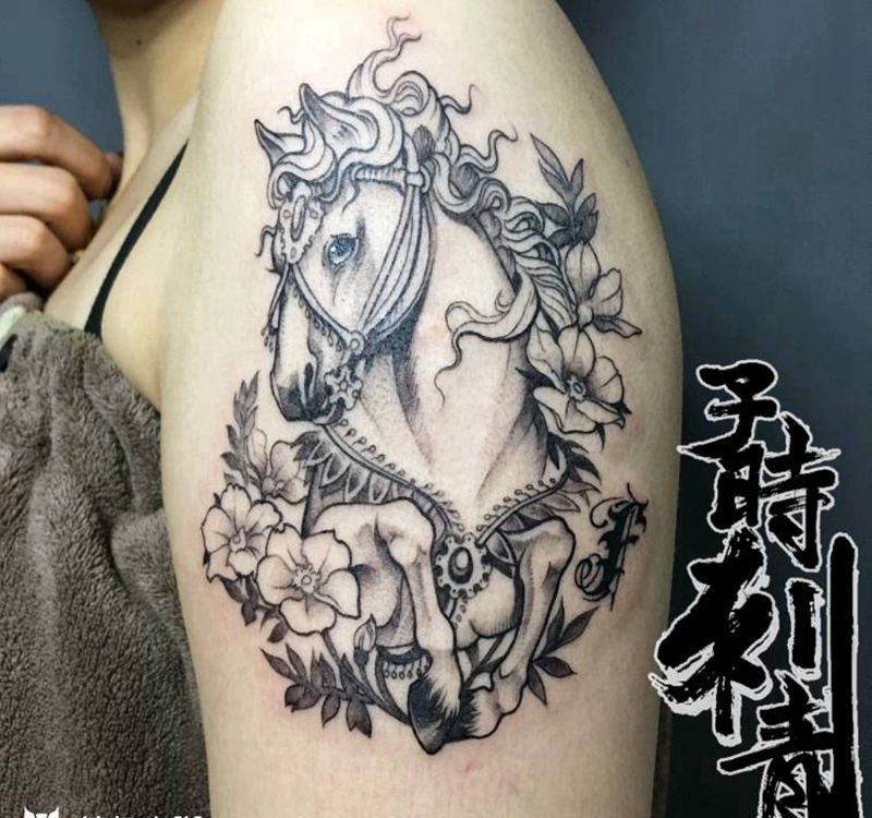 当前位置: 首页 >北京市纹身店-北京子时纹艺刺青工作室纹身图案>骏马纹身图片_手臂欧美写实马纹身图案