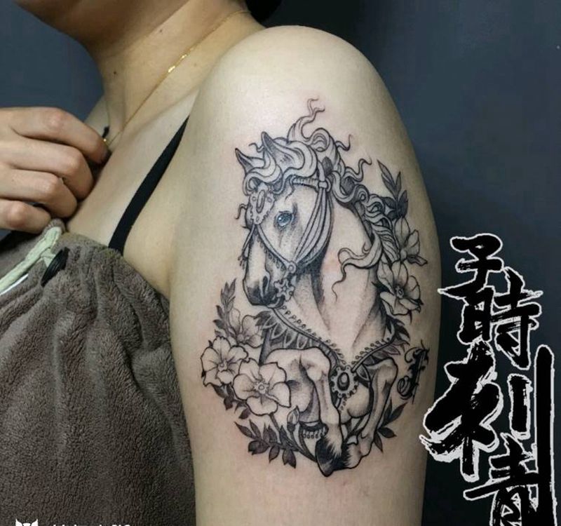 当前位置: 首页 >北京市纹身店-北京子时纹艺刺青工作室纹身图案>骏马纹身图片_手臂欧美写实马纹身图案