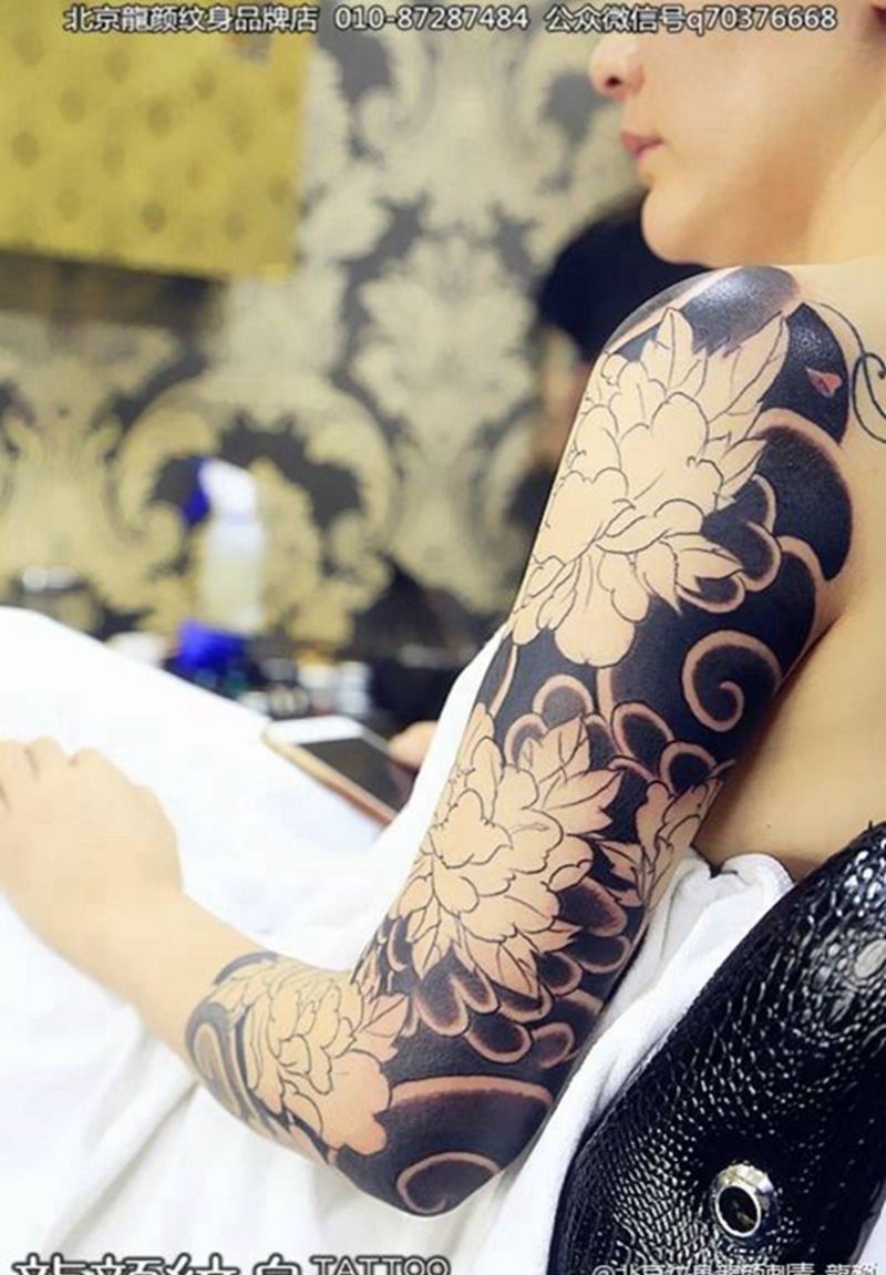 花臂牡丹纹身图片_手臂老传统牡丹纹身花臂牡丹美女纹身纹身图案