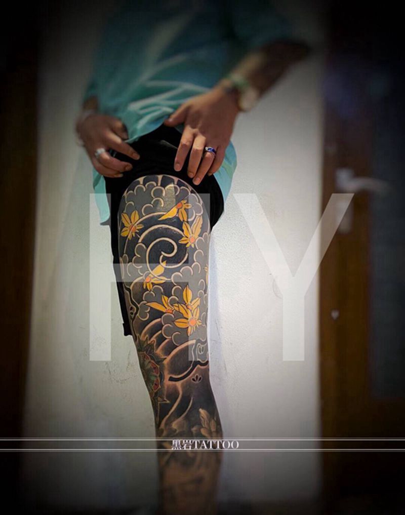 • T网红王老大花腿龙纹身图片_腿部新传统纹身图案
