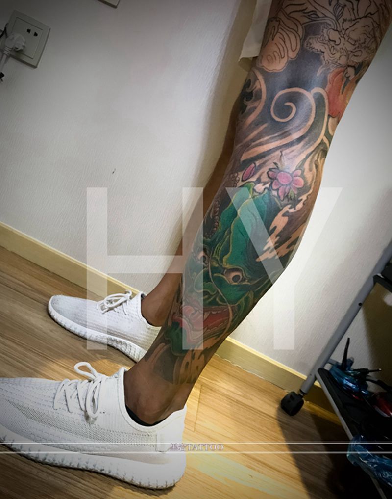 般若纹身图片_腿部新传统纹身图案