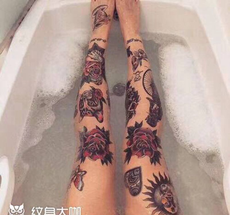 时尚达人纹身图片_腿部Old School纹身图案