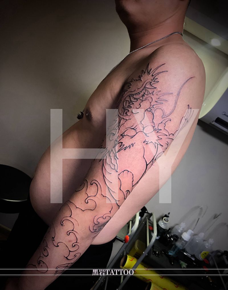 • T网红王老大花腿龙纹身图片_腿部新传统纹身图案