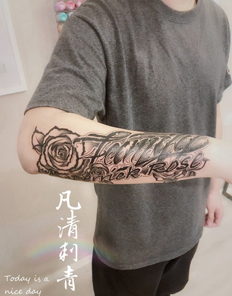 当前位置: 首页 >北京市纹身店-凡清刺青纹身图案>花体纹身图片_手臂花体字纹身图案