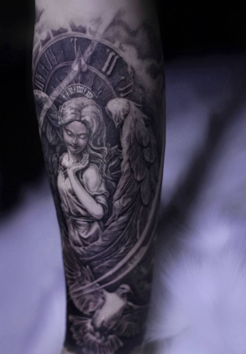 小天使纹身图片_手臂手部欧美写实纹身图案