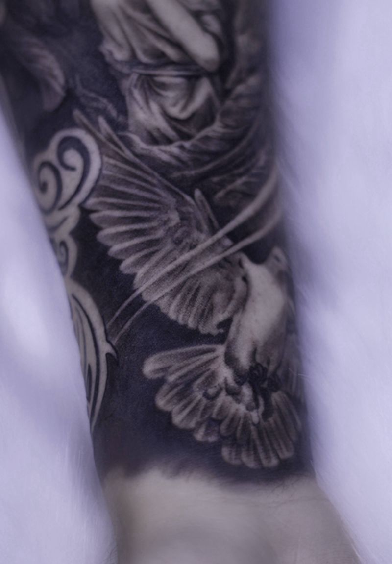 写实鸽子,天使纹身图片_手部欧美写实纹身图案