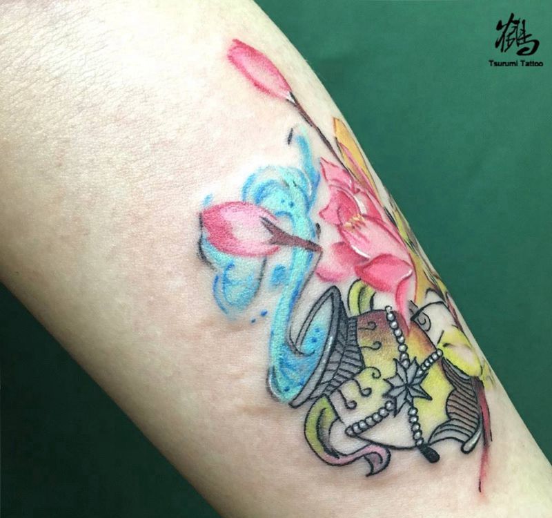 当前位置: 首页 >北京市纹身店-鹤见刺青処纹身图案>水瓶座➕花纹身图片_成品手臂清新原创植物纹身图案