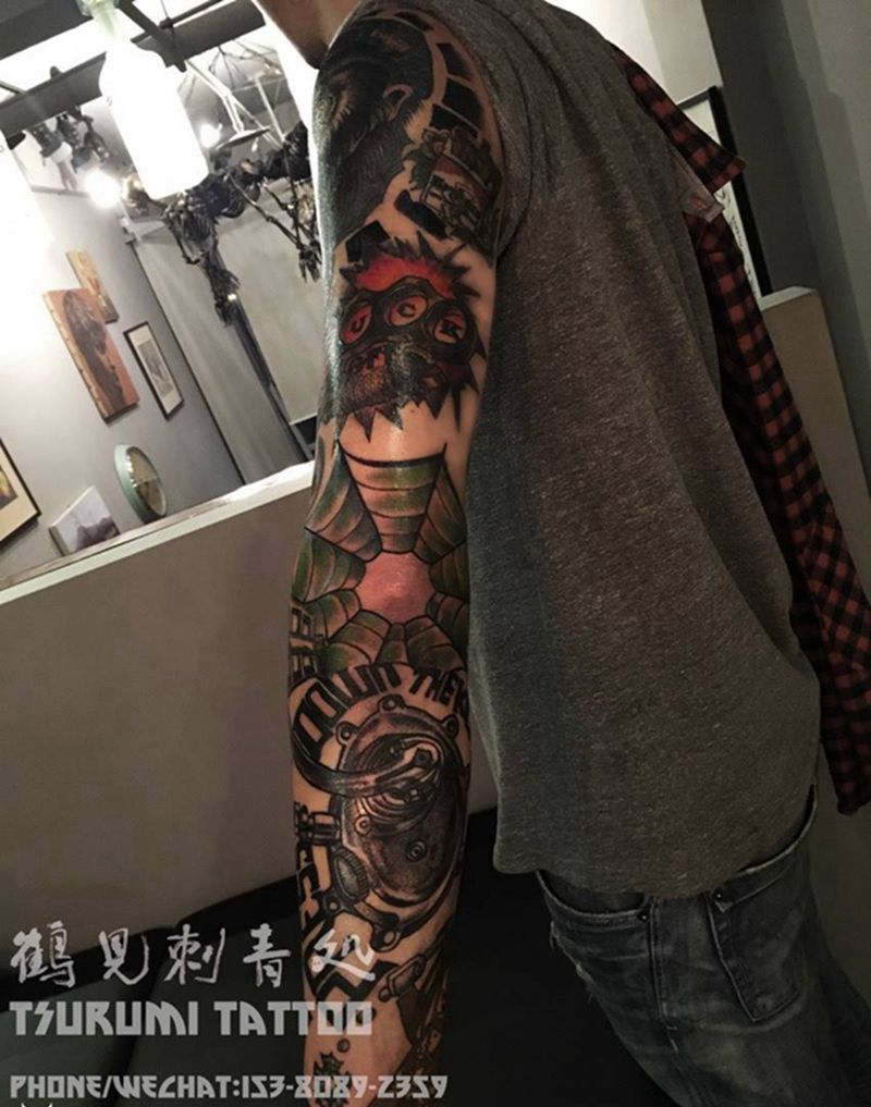 当前位置: 首页 >北京市纹身店-鹤见刺青処纹身图案>原创oldschool花臂纹身图片_